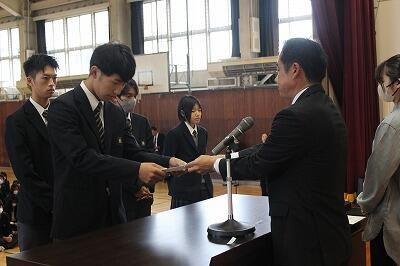 表彰式では、陸上競技部の生徒5名の表彰がありました。