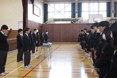 表彰式では、夏季休業中に大会があった吹奏楽局と美術部の表彰がありました。