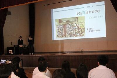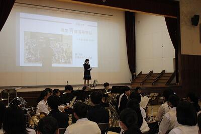 本校吹奏楽局によるミニコンサートや、生徒会長からの挨拶、執行委員の学校説明を経てか