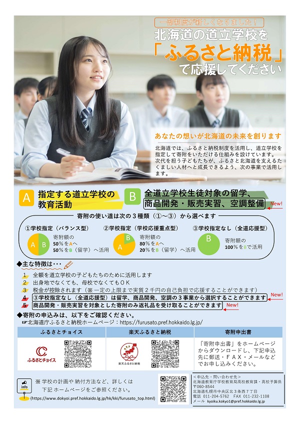 問い合わせ先:北海道教育庁学校教育局高校教育課予算係 011-204-5762